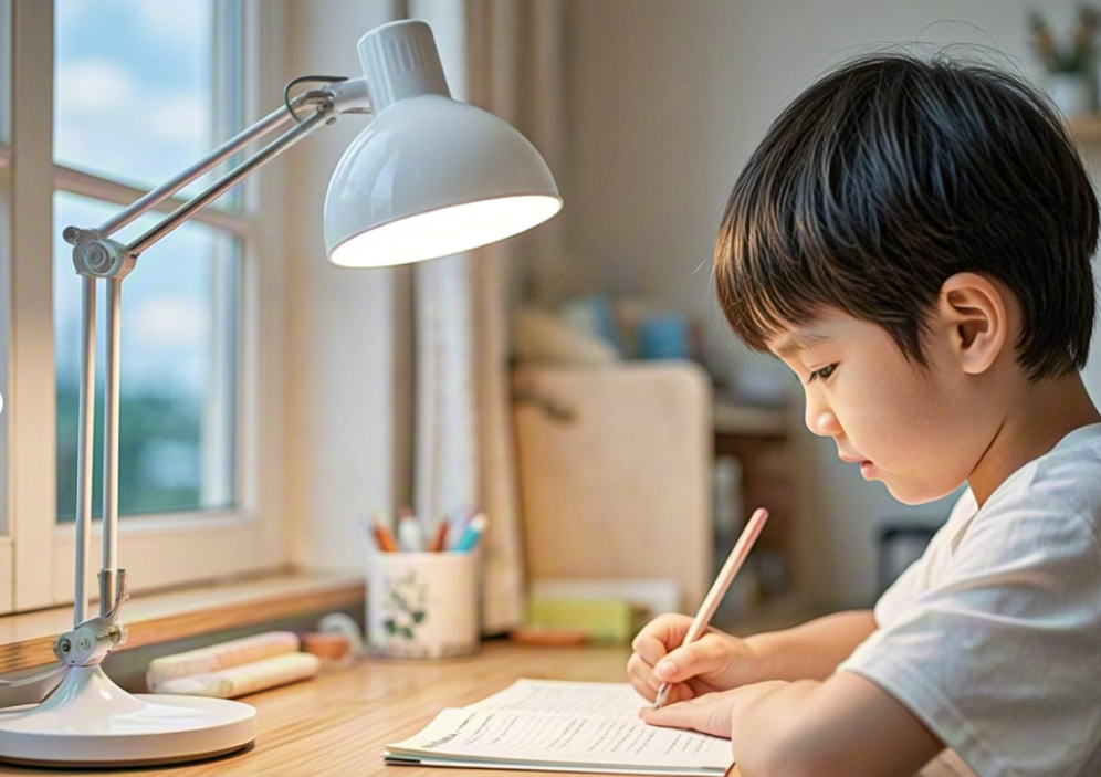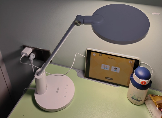 台灯发光面的角度,应该是朝下的,不能对着孩子的脸,否则也会让孩子感到不适。