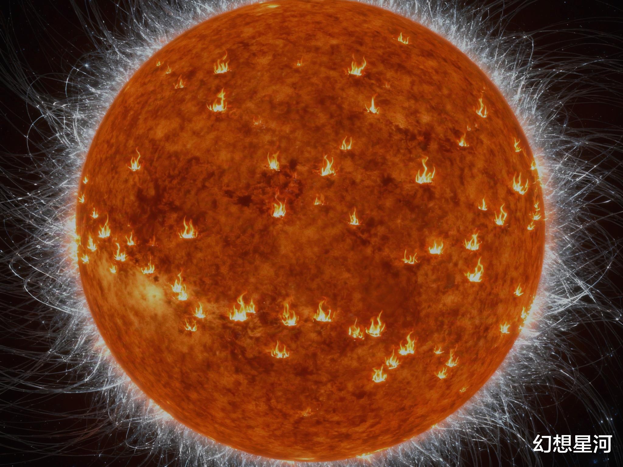 太阳的外层大气,有一个反常识的现象。5500℃,是太阳表面也就是光球层的温度,这个温度,地球上任何一种金属都能被熔化。可日冕远离表面,温度却飙升到100万到300万摄氏度,表面温度的数百倍就是这个数值。围着篝火取暖,离火堆越远反而感觉越灼热,这完全违背了我们熟悉的热量传递规律。