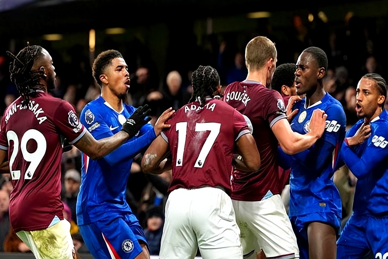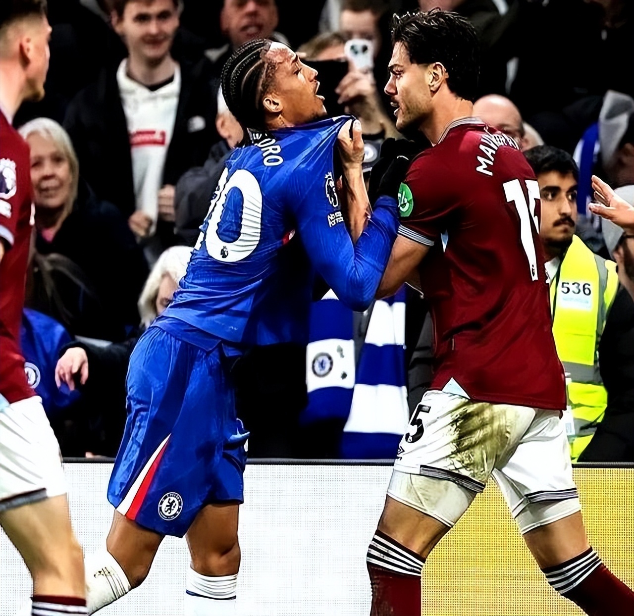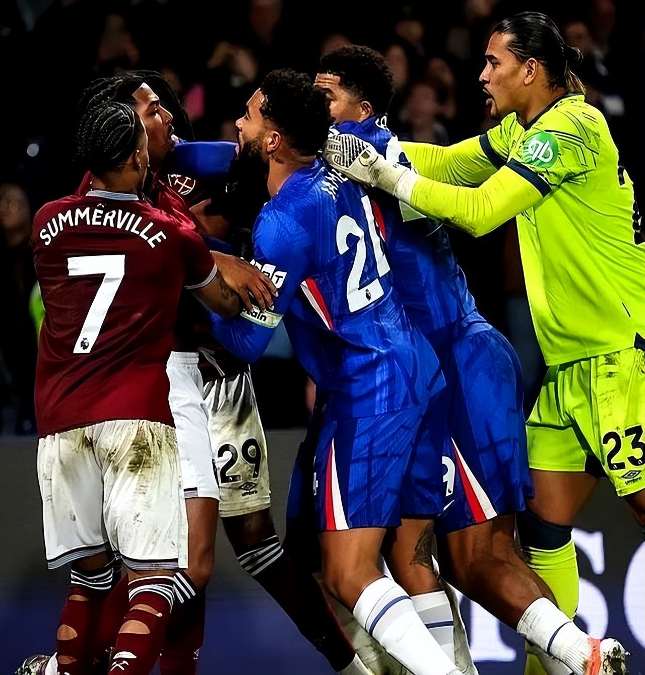 比赛第95分钟,在一次边线球的争夺中,西汉姆联边锋阿达玛·特拉奥雷与切尔西后卫马克·库库雷利亚发生激烈身体接触。特拉奥雷直接将库库雷利亚推出了场外,后者在地上翻滚后站起,双方随即顶牛。切尔西前锋若昂·佩德罗第一时间上前为队友出头,推开了特拉奥雷,这一举动瞬间点燃了火药桶。