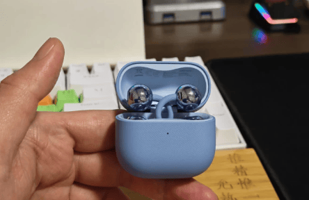 音质方面,这款耳机的低频下潜比较到位,鼓点冲击力强,听电子、说唱或节奏感强的音乐时表现更有氛围感。中频人声清晰,不会被低频掩盖,高频延展适中,不容易出现刺耳问题。连接方面采用蓝牙5.2芯片,虽然版本不算新,但日常使用中的稳定性和延迟表现仍在可接受范围内。续航表现不错,单次使用约8小时,配合充电盒可以满足一整天的使用需求。