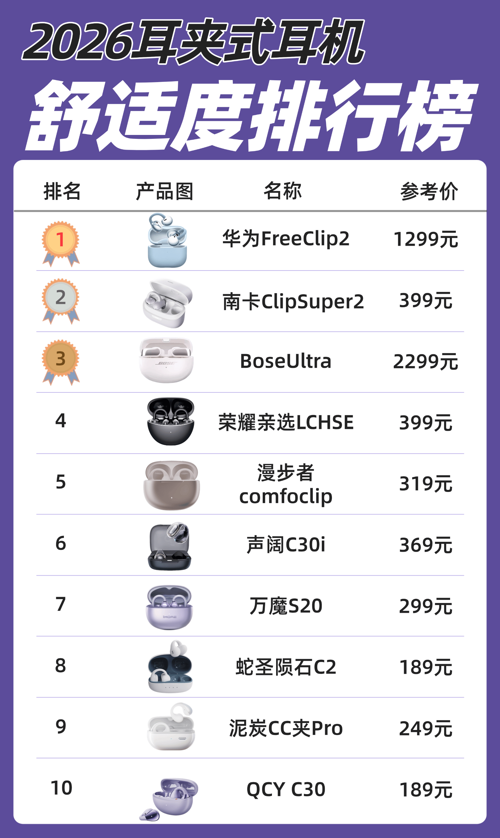 不过现在做夹耳式蓝牙耳机的品牌越来越多,质量参差不齐,一不小心就会买到音质差、续航短或者戴久了磨耳朵的款式。所以这次专门整理了十款最值得入手的夹耳式蓝牙耳机,每一款都从佩戴感、音质、续航和稳定性这些实际使用场景做了筛选。接下来就把这些靠谱的品牌和型号分享给大家,帮你省去反复对比的麻烦!