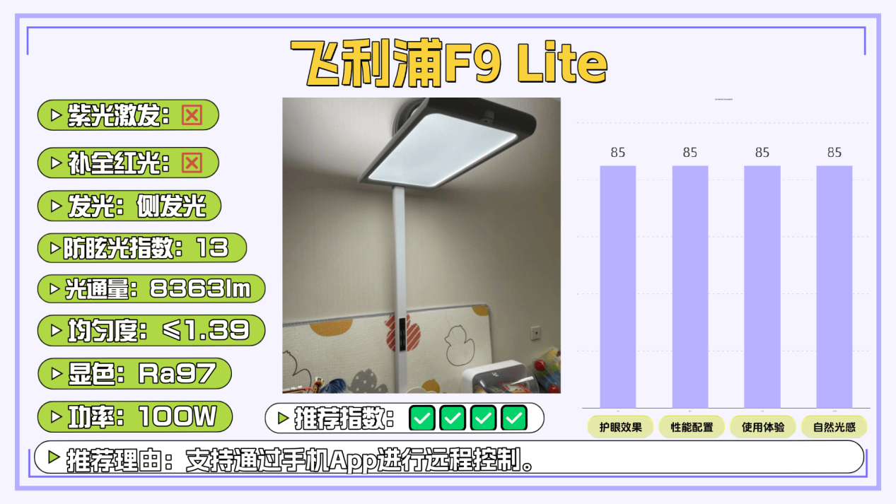 护眼大路灯榜单第六名:飞利浦F9 Lite;支持通过手机App进行远程控制。