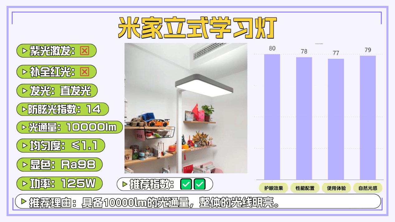 护眼大路灯榜单第八名:米家立式学习灯;具备10000lm的光通量,整体的光线明亮。