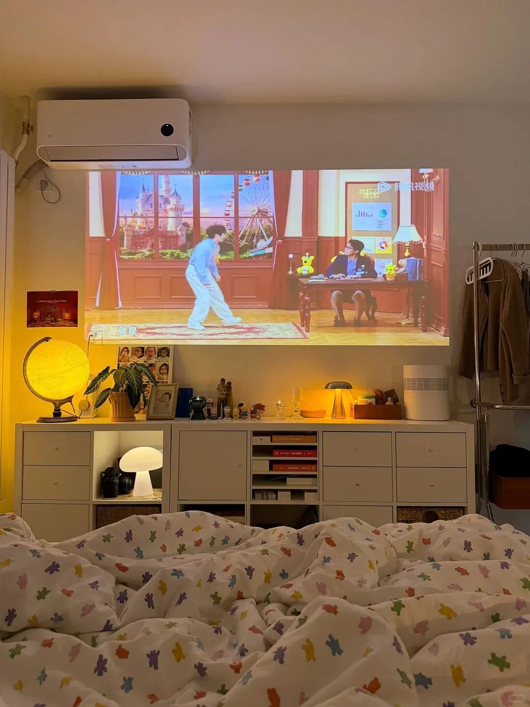 租房没装电视的话,投影仪直接平替超香!往白墙上一投就能看,轻巧便携的款搬家拎着就走,一点不费事。