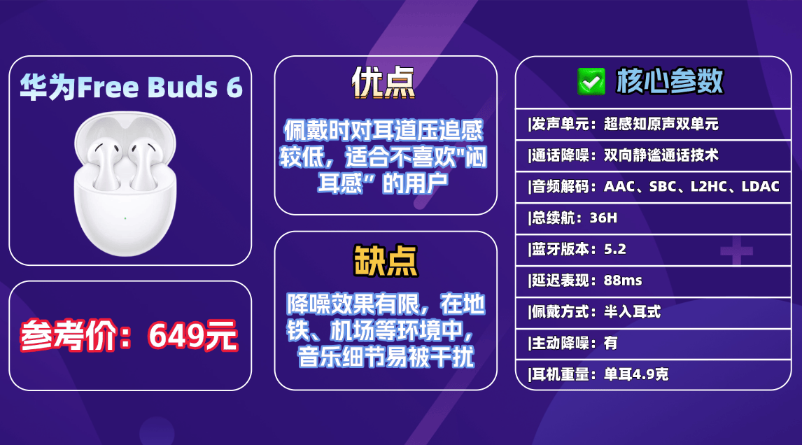 推荐产品4、华 为F reeBuds 6蓝牙耳机