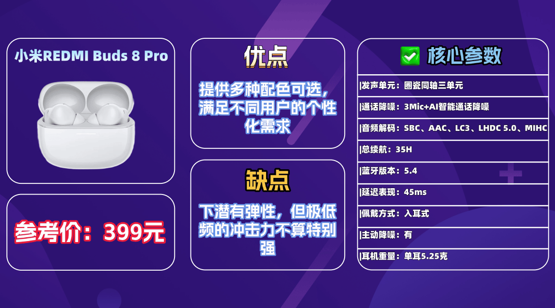 推荐产品10、小 米R EDMI B uds 8 Pro蓝牙耳机