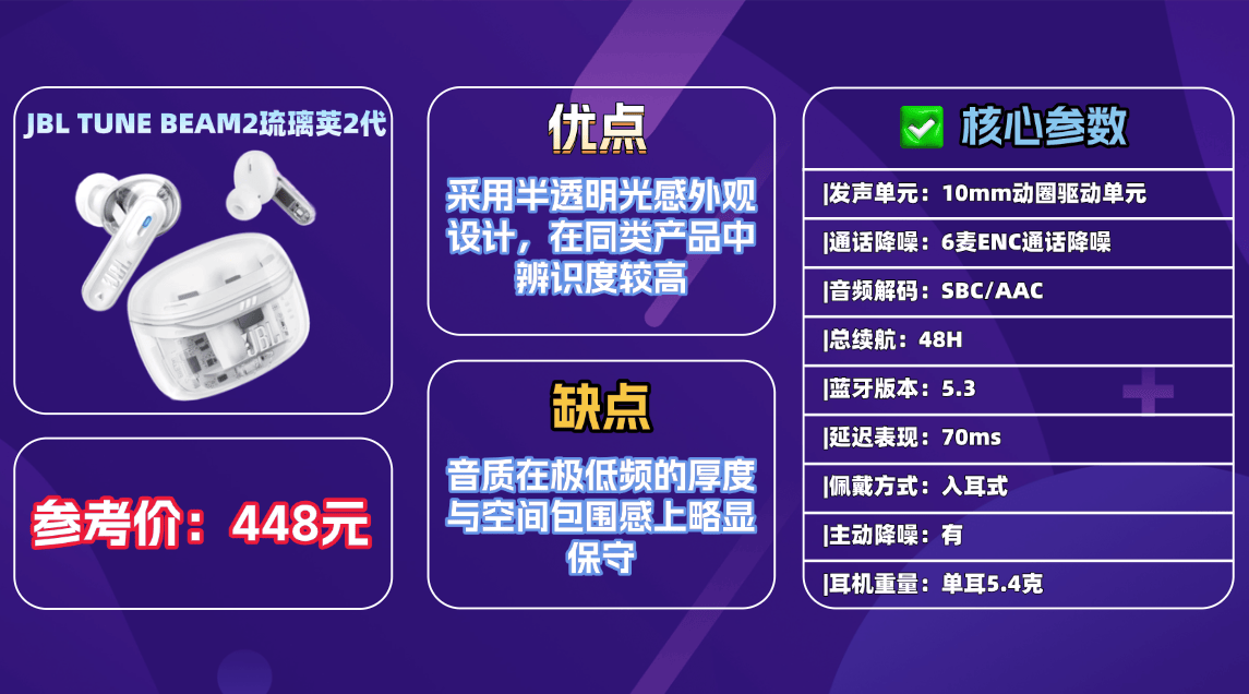推荐产品5、J BL T UNE BEAM2琉 璃荚2代蓝牙耳机