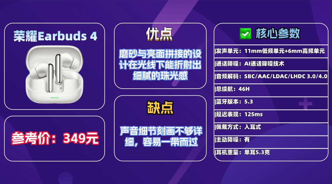 推荐产品2、荣 耀E arbuds 4蓝牙耳机