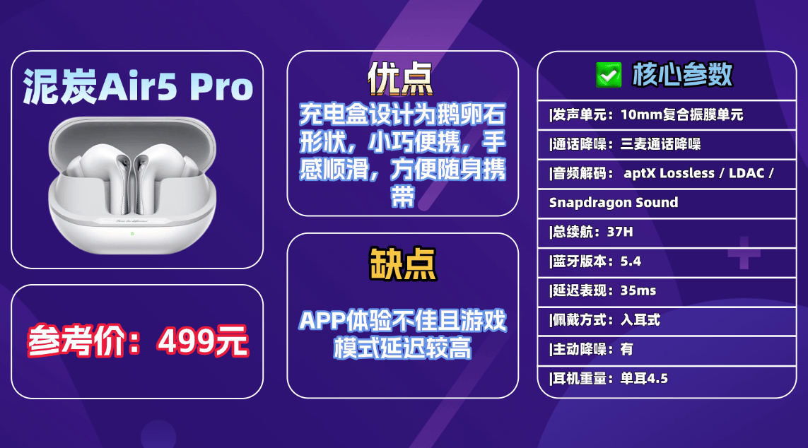 推荐产品7、泥 炭A ir5 Pro蓝牙耳机