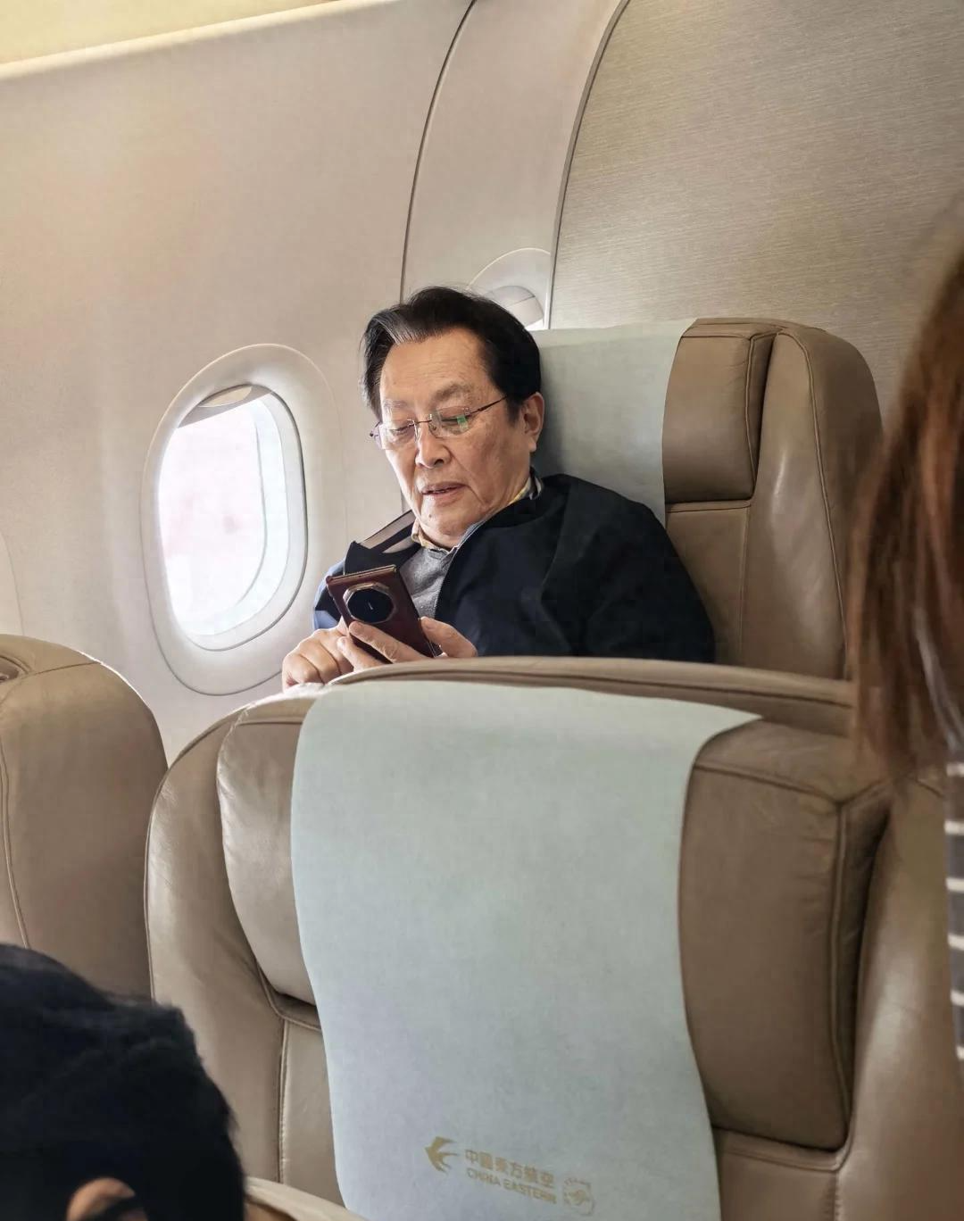 网友飞机上偶遇唐国强老师,玩三折叠手机满脸享受,一脸慈祥,老艺术家的淡雅从容!
