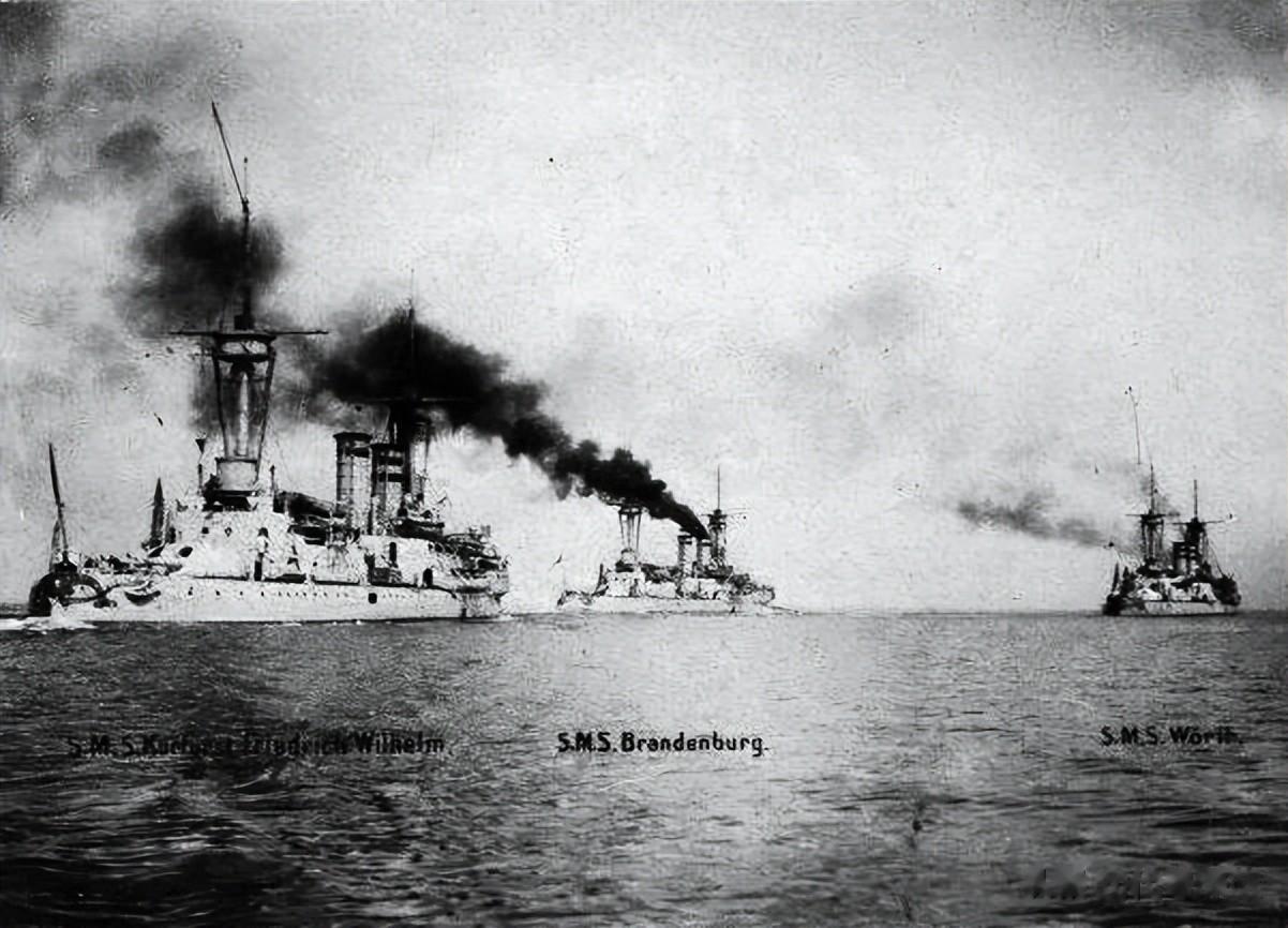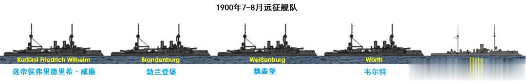 7月4日,第1战列舰支队奉命调往中国。7月9日清晨,各舰依次驶离基尔港:领航的是“赫拉”号侦察巡洋舰,其后依次为“韦尔特”号、“魏森堡”号、“勃兰登堡”号和“选帝侯弗里德里希·威廉”号4艘战列舰(均属“勃兰登堡”级)。