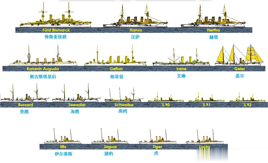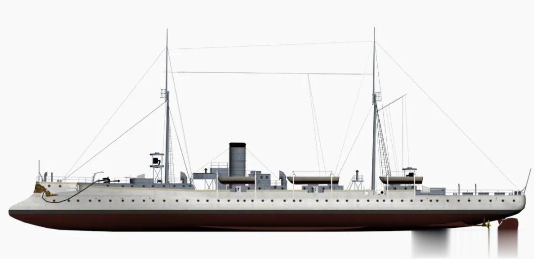 “艾琳”号属于“艾琳”级首舰,是德国第一批防护巡洋舰,排水量4271吨,主炮为4门150毫米炮