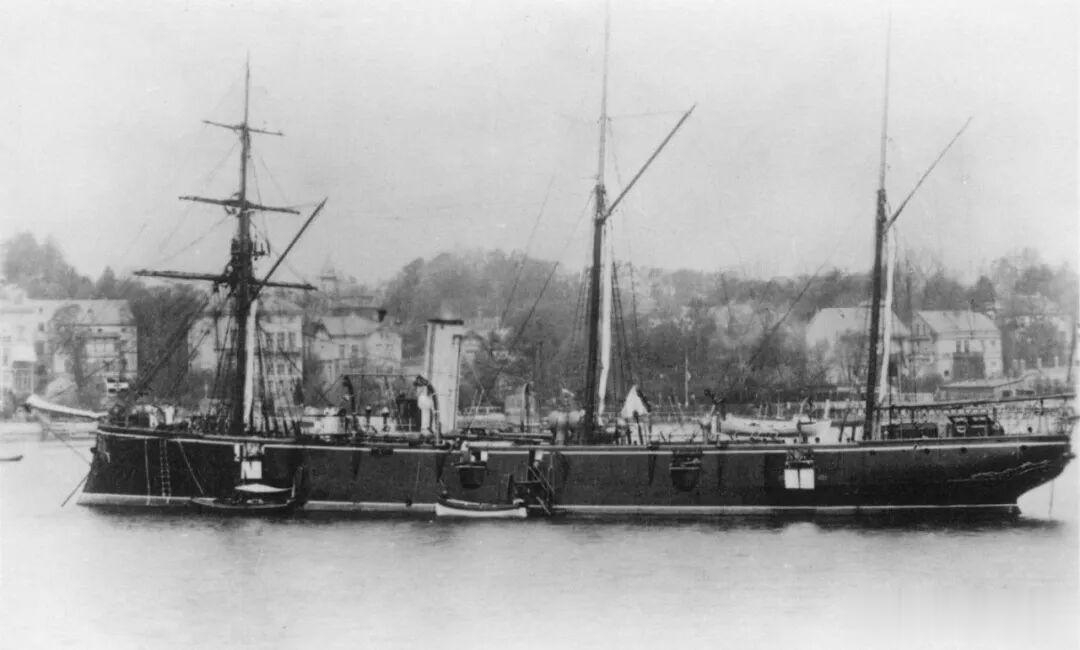 “秃鹰”号属于秃鹰级殖民地巡洋舰,是德国海军最后一级带风帆的巡洋舰,排水量1559吨,装备8门105毫米炮