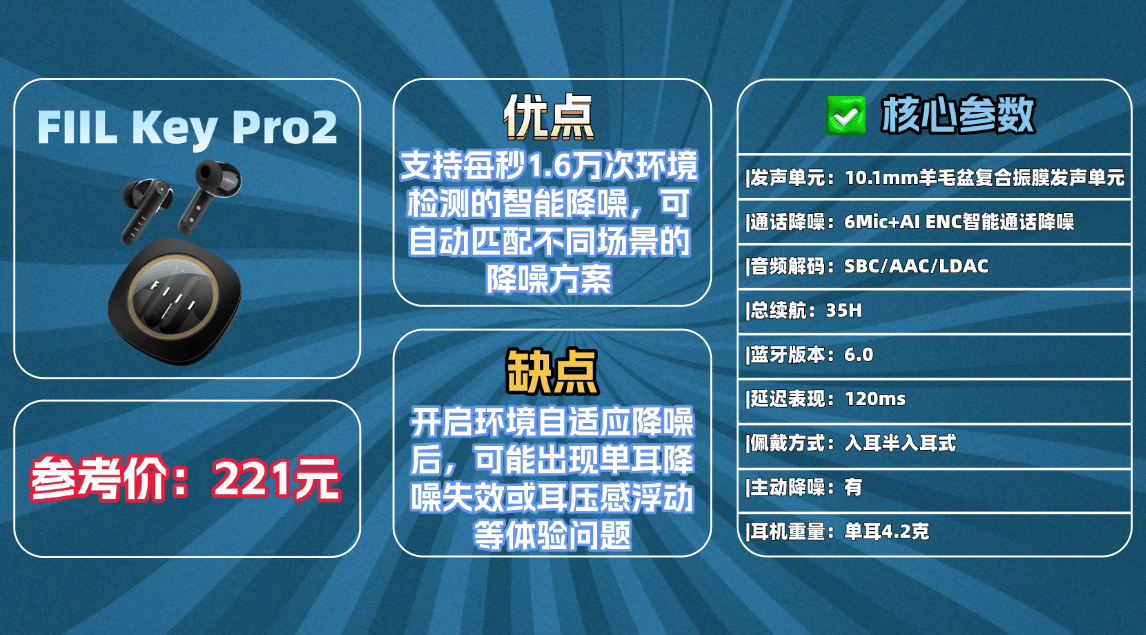 2:功能层面支持蓝牙6.1,连接稳定且延迟控制良好,多设备切换顺畅,适合通勤与办公场景。通话配备多麦ENC降噪,在嘈杂环境中语音清晰度较为可靠。续航方面,在开启降噪时单次约7小时,配合充电盒综合续航可达约35小时。