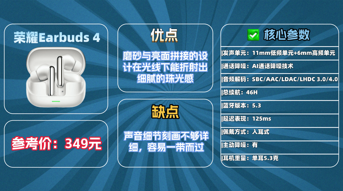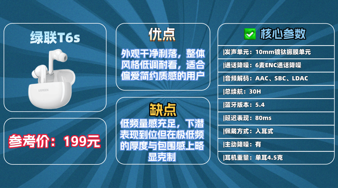 · 声学调校技术:有些品牌拥有专业发声单元调校,能还原音源本色,让低频饱满不轰头、中高频通透清晰,同时锁住声音细节,实现接近无损的听觉体验,避免音质发闷、浑浊的问题。