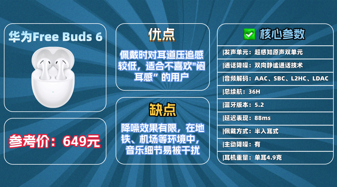 5、华 为F reeBuds 6蓝牙耳机