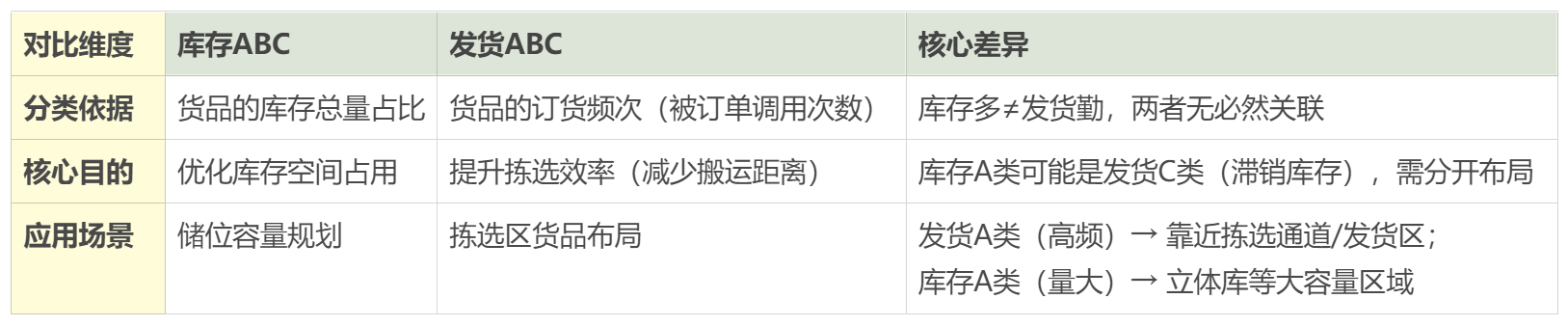 这个你肯定听过,就是把最常流动的货(A类)放在最容易拿到的地方,不常动的(C类)放远点。不过话说回来,这个A、B、C的标准不是死的,得根据你自己业务的发货频率来定,千万别生搬硬套。