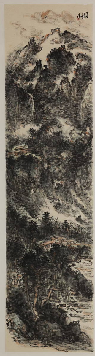 这便是田占峰的画,是墨叠而成的溪山傲骨,是笔织而成的云气魂灵,是他写给太行与溪谷的一封深情款款的情书。不必懂得积墨的层叠奥秘,不必明了皴法的细微分野,只需轻轻抬眼,凝视那画中的世界:看墨山沉郁如眠,似一位智者在岁月的长河中沉思;看云气轻软如醒,如一位仙子在梦幻的天空中翩翩起舞;看屋舍暖艳如灯,像一位母亲在温暖的家中守望。便懂了——他的笔,从不是简单地描绘山的轮廓,而是在滋养山的魂灵,让每一颗眷恋溪山的心,都能在这浓墨云气之中,寻到一息可以栖居的清宁,恰似那沉寂在心中的一封家书,承载着无尽的思念与温暖,慰藉着漂泊的灵魂。