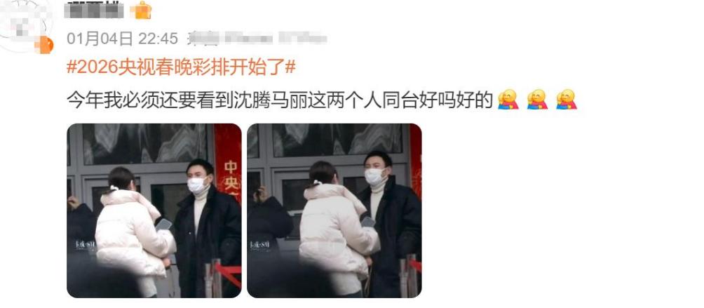 除了唐诗逸,沙溢、刘宇宁、周深、杨幂、吴磊这些春晚常客也被拍到了,可最让大家激动的,还是沈腾和马丽的同框路透!
