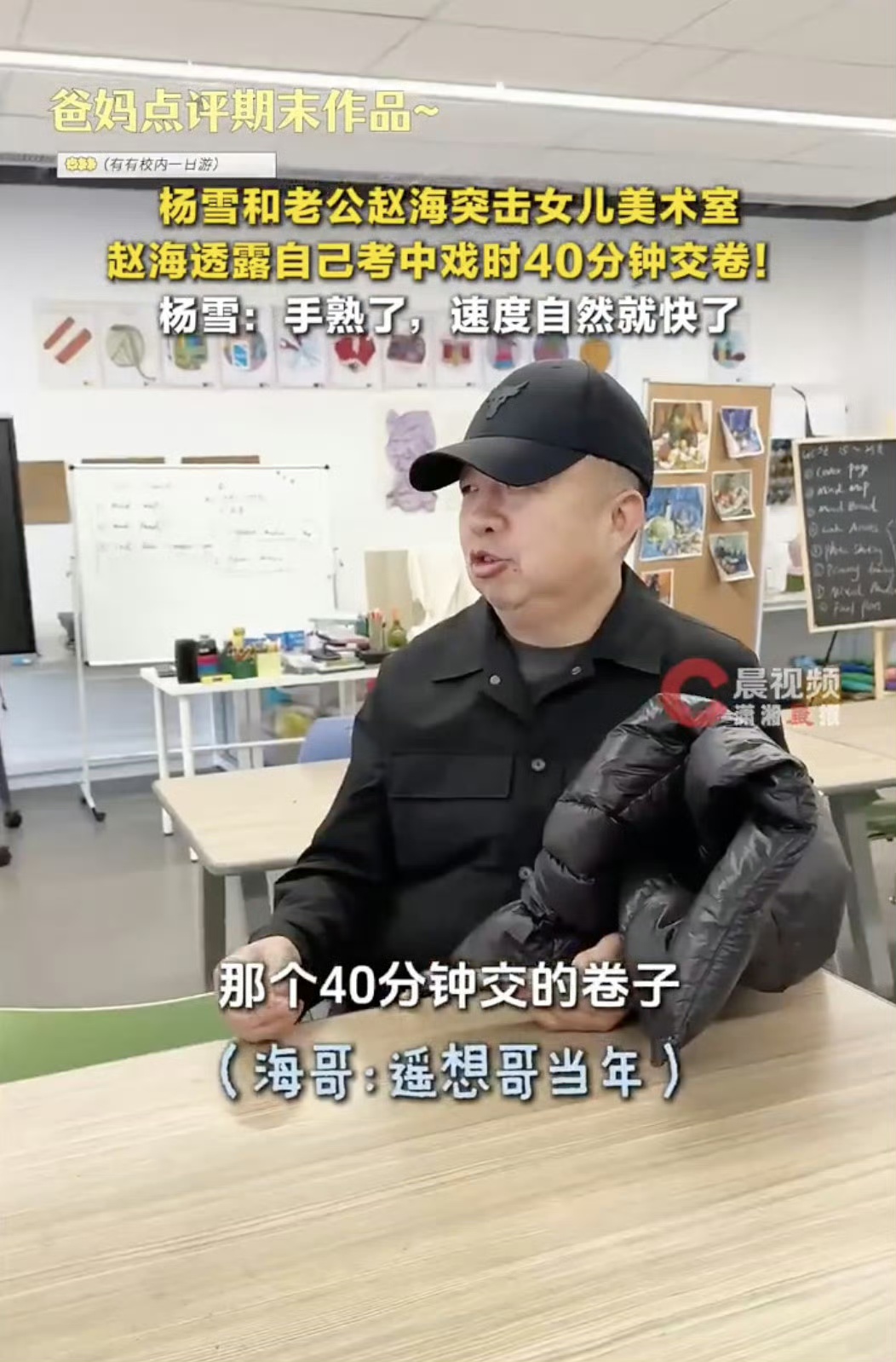 视频中,杨雪与丈夫赵海一同“突击检查”女儿的美术室,欣赏孩子的期末作品。当老师提到孩子画画速度有待提高时,一旁沉默的赵海忽然开口,轻描淡写地回忆起自己当年考取中央戏剧学院的经历:“还是得敢画,我考中戏的时候,40分钟就交卷了,熟能生巧。”这番举重若轻的表述,瞬间引爆了网友的好奇心。在艺术类考试中,能在极短的时间内高质量完成作品,这绝非偶然,而是专业能力达到“炉火纯青”境界的体现。这短短一句话,仿佛一把钥匙,打开了通往这位“隐形大佬”深厚功底的大门。