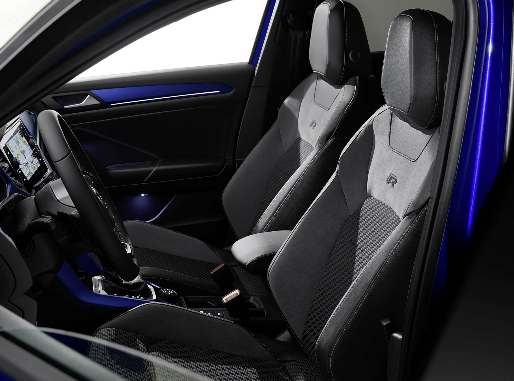 全新大众T-Roc R车内采用了经典的黑蓝撞色搭配,与车身色调保持一致,蓝色也是大众集团气场的高性能的表现。采用了大面积Alcantara面料的铺陈,亮黑色钢琴烤漆饰板,大量碳纤维饰板的加入,再配上前排两个带有R刺绣头枕的桶装赛车座椅,强化了整车的运动气息。科技感方面,该车搭载了与高尔夫R同级的数字化仪表盘和中控系统,提供清晰、可定制的驾驶信息显示,支持多种驾驶模式下的界面切换。支持无线CarPlay和Android Auto的智能信息娱乐系统,操作流畅,响应迅速,并集成语音助手功能,实现对导航、多媒体、空调等的便捷控制。