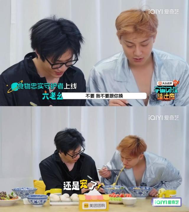 吃早饭的两人也是梅开二度,黄子韬馋刘耀文碗里的细面,而嘴上护食说不给的刘耀文,实际行动是大方分享食物,还特意把碗推过去一些好方便黄子韬吃面。好好好,这饭是真香!能让食物忠实守护者刘耀文给分一点面条,已经是很宠了。