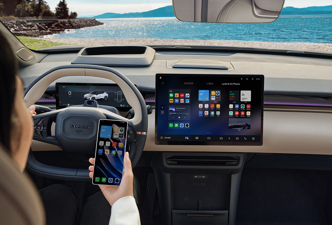 车机互联的全面升级则解决了新手司机跨设备使用的困扰。领克Z20打破手机与车机的品牌壁垒,全面支持CarPlay、HiCar、CarLink三大主流互联方案,覆盖苹果、华为、小米、OPPO、vivo等主流手机品牌。新手司机无需学习复杂的车机导航与音乐播放操作,可直接将手机上熟悉的导航、音乐、通讯、日程等功能无缝流转至车机,实现生态自然衔接,避免了因操作陌生而分散驾驶注意力。