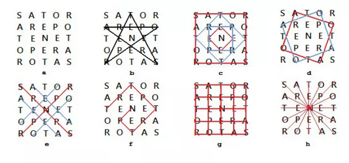 这组单词非常有意思,无论是左右上下还是倾斜,都能组成来回文。同时,这五个单词在影片里也对应了不同的角色和关键元素,设计可谓十分巧妙。
