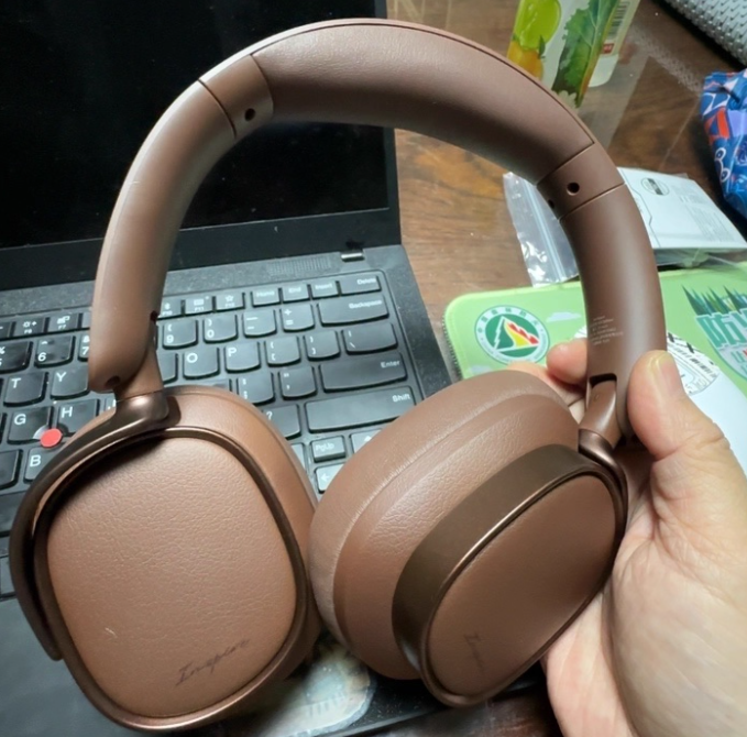 佩戴体验:它整体重量大概 260g,拿在手里不算沉,耳罩是蛋白皮材质,软乎乎的能把整个耳廓都包进去,边缘刚好卡在脸颊轮廓上,不会直接压耳朵,夏天戴久了也没觉得闷汗。对戴眼镜的人也友好,镜腿不会硌耳,戴两三个小时,耳根都没什么不适感。