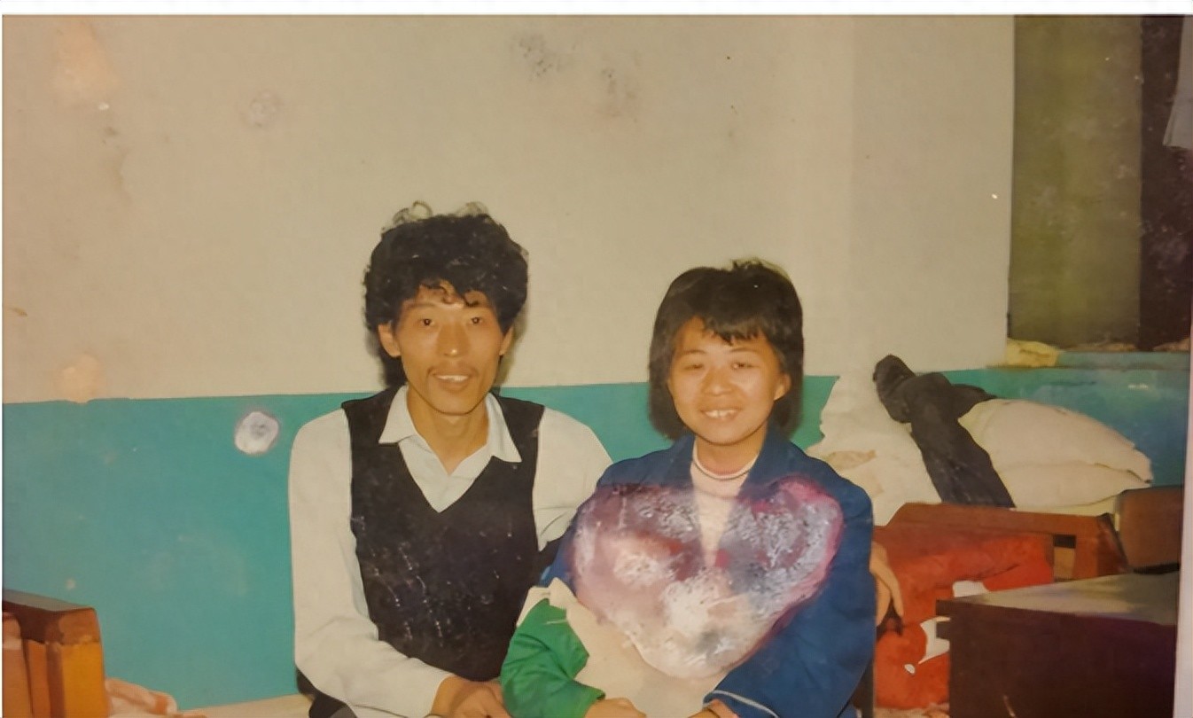 照片定格的是一家三口的日常,夫妻俩并肩坐在卧室的木床上,房间刷着干净的白墙,围了一圈蓝色墙裙,看着像是刚翻新过,没有奢华的装饰,却满是藏不住的烟火温情。床边摆着一张朴素的长条桌,没有值钱的家当,却处处透着踏实的幸福。