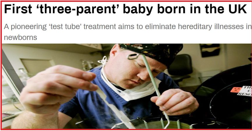 在美国制造出首位一个爸爸、两个妈妈的“三亲婴儿”诞生7年后,英国宣布他们首批“生产”了不少于5名“三亲婴儿”。