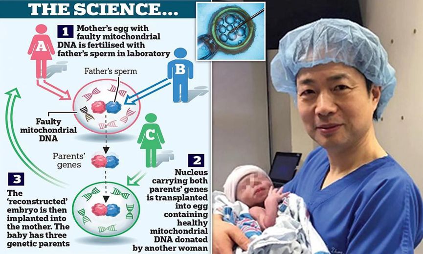 这种被称为“线粒体捐赠治疗”(MDT)的体外受精技术,使用来自健康女性捐赠者卵子与生育父母亲的DNA结合,一起制造婴儿胚胎,从而可以帮助生育母亲避免将基因退化疾病遗传给下一代。这个过程被命名为“三亲婴儿”,尽管婴儿中超过 99.8%的DNA来自母亲和父亲。