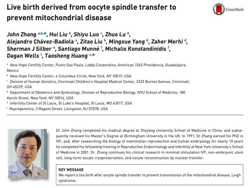 他们找到了美国纽约新希望生殖中心,该中心由美籍华人医生张进(John Zhang)于2004年创建,张医生1984年在浙江大学获得学士学位后到英国留学,在伯明翰大学和剑桥大学取得硕士学位和博士学位,之后前往美国,成为试管婴儿领域公认的顶级专家,在辅助生殖方面具有丰富经验。张医生提出了这项即使在7年前也仍为大胆的方案——“线粒体替代疗法”。张医生一直在研究使用所谓的“三亲技术”来避免线粒体疾病的方法。从理论上讲,“线粒体替代疗法”的主要方案有三种,原核移植、纺锤体移植和极体移植。英国批准的方法称为原核移植。但这种技术并不适合这对夫妇——作为穆斯林,他们反对破坏两个胚胎。所以张医生采取了纺锤体移植。即在受精前进行,将母亲的卵子中的纺锤体复合体提取出来,移植到供体相应的卵母细胞中,再进行受精。这个婴儿除了拥有父母的细胞核基因,还拥有捐赠女性的线粒体DNA。由于美国尚未批准线粒体替代疗法,张进医生团队和这对中东夫妻最终选择前往墨西哥,并获得了墨西哥诊所内部审查委员会的特别批准。这名约旦孕妇怀孕37周后产下了这名男婴,根据检测,婴儿体内各组织细胞的线粒体变异比例各不相同,介于2.36%-9.23%,但一般线粒体疾病发病需要变异达到20%以上,所以这是一名健康的孩子。这名婴儿至今仍健康的活着,各项体征都监测正常。“三亲婴儿技术”至此进入一个高速赛道。