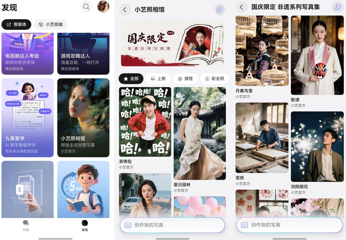 最近刷到鸿蒙5手机里的小艺照相馆和小艺时光机,还能直接把我的宅家假期变得更有趣!其实我早就想拍组有文化氛围的国风写真,可又懒得去照相馆排队。正巧小艺照相馆在国庆期间上新了超多国风主题模板,比如“国庆限定”的这些非遗系列写真集,每款都超有氛围感!而且操作超简单,只需拍摄或上传一张自己的照片,小艺就能像变魔术把我的脸完美融入各种风格的模板中,等假期挑一个“脸谱”风格发朋友圈,假装自己真的玩了一波京剧变脸。