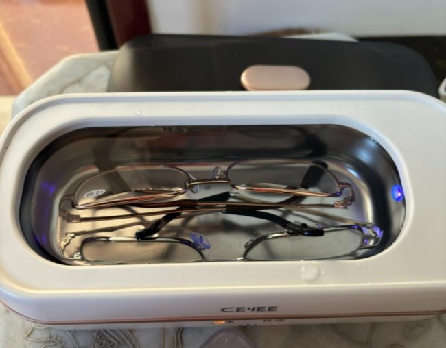 而希亦CG超声波清洗机,正是为解决这些痛点而设计。它采用UCT气泡清洗系统,搭配48000Hz高频声波,微气泡能深入镜片、镜架、鼻托等死角,彻底去除油脂、灰尘和皮脂。清洗时气泡在水中密集爆裂,覆盖每个细微缝隙,实测洁净率高达96%,在同价位产品中清洁力和效率都名列前茅,镜片透亮如新,效果直观明显。