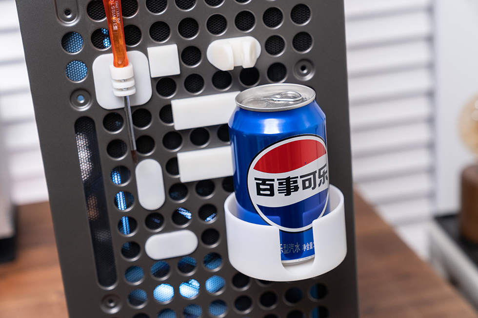 酷冷至尊QUBE酷方540洞洞板开孔尺寸与间距与酷方 500 完全一致,前代玩家自制的 3D 打印配件可直接复用,Printables 平台海量创意配件(如自定义支架、装饰件)进一步丰富改造空间。通过 3D 打印转接件,可在机箱外部加装额配件,配合可拆卸提手与脚架,实现桌面摆放、便携携带等多场景切换,满足 DIY 玩家的创意表达需求。