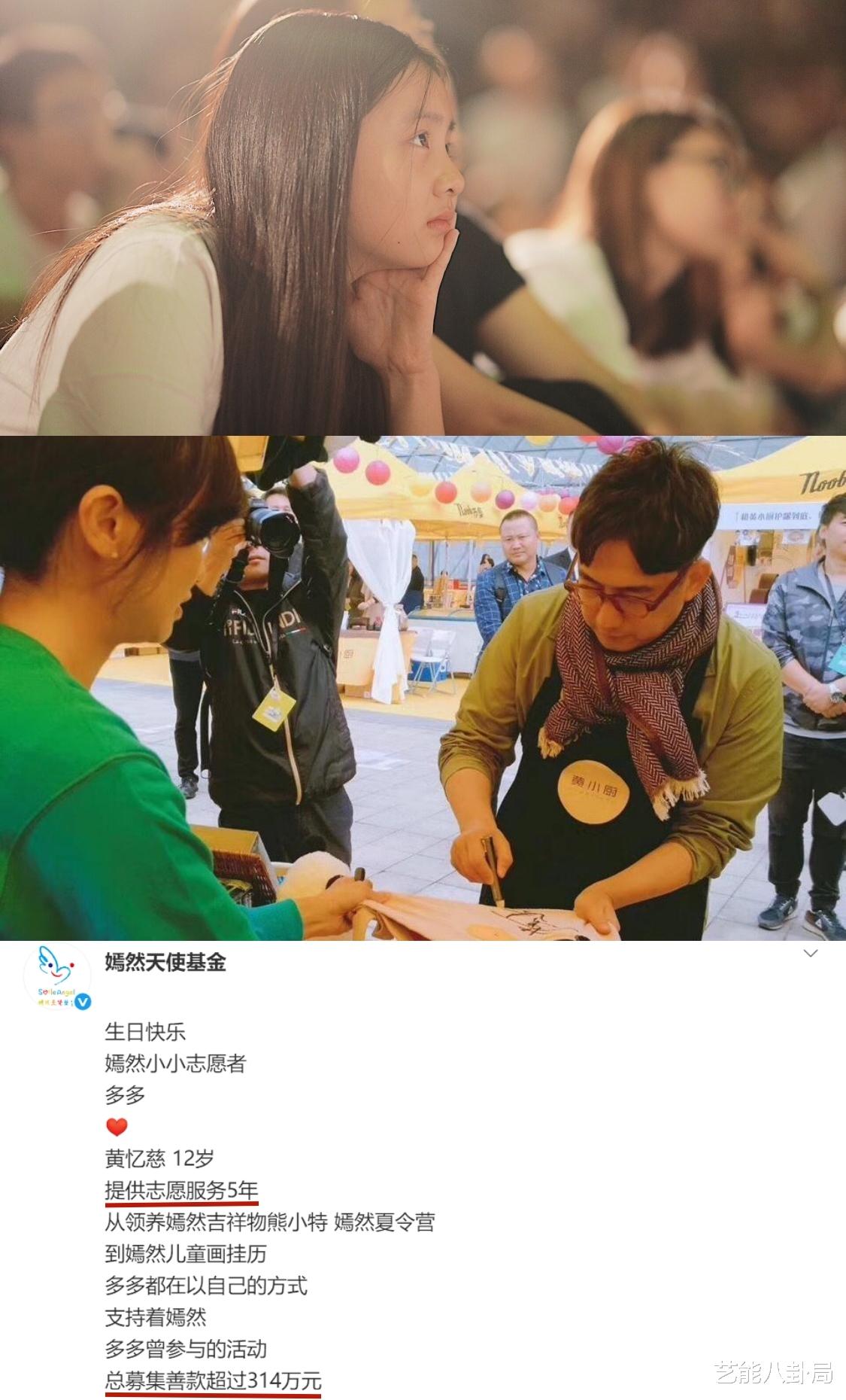 捐赠名单中年龄最小的,当属黄磊和孙莉的女儿黄忆慈——黄多多。