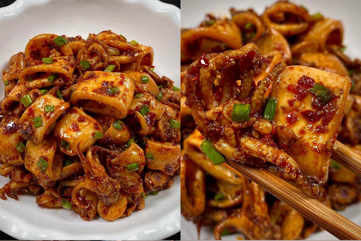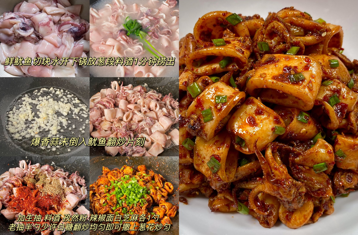 窗外的天黑下来了,灶台上的油烟机嗡嗡响着,盘子里的鱿鱼冒着热气。夹一块尝尝,脆嫩刚好,咸辣适中。鱿鱼这东西,从海里到碗里不过半天光景,却在滚烫的铁锅里打了个漂亮的卷,把海的鲜、火的烈、人的用心,都卷进那一道弯弯的弧度里了。