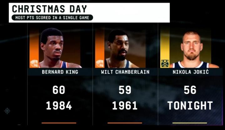再把目光聚焦于得分上,56分是约老师的生涯第二高单场得分,上赛季,他曾拿到61+10+10的三双数据,却仍然输给了森林狼(怎么每次打木狼都这么来劲),这一次,约老师终于既收获了数据,也拿到了胜利。虽然,56分在年终大战的历史上,只能排到第三(前面为伯纳德-金在1984年拿到的60分和张伯伦在1961年拿到的59分),但却是年终大战首次出现55分以上的三双,同时,约老师也是历史上唯一一位不止一次拿到55分以上三双的球员。