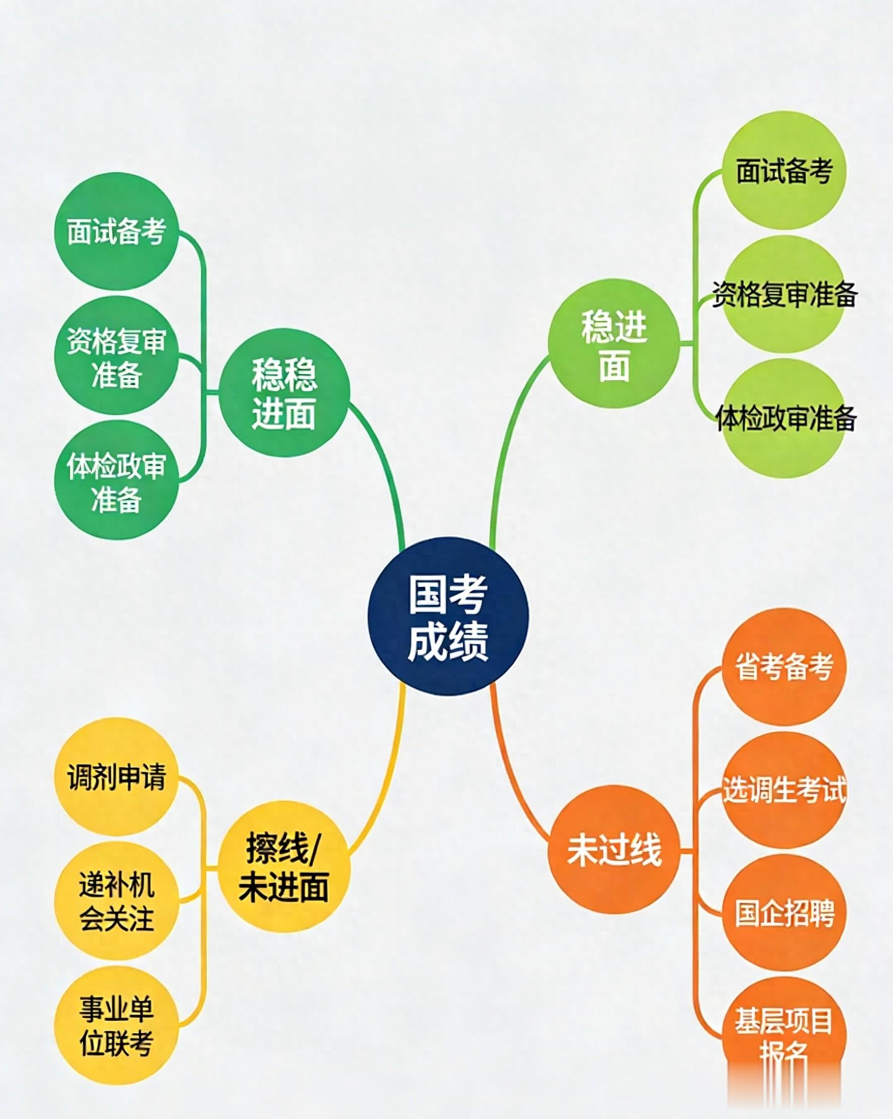 每年都有大量考生陷入“分数执念”:考得高就躺平等面试,考得一般就直接放弃,却不知道国考的上岸路径从来不是“一考定终身”。从成绩公布到最终录用,至少藏着3次改写命运的机会,而多数人只会盯着眼前的分数,错失后面的机遇。今天就用最实在的逻辑,帮你理清查分后的所有出路,每一步都有可落地的行动指南。