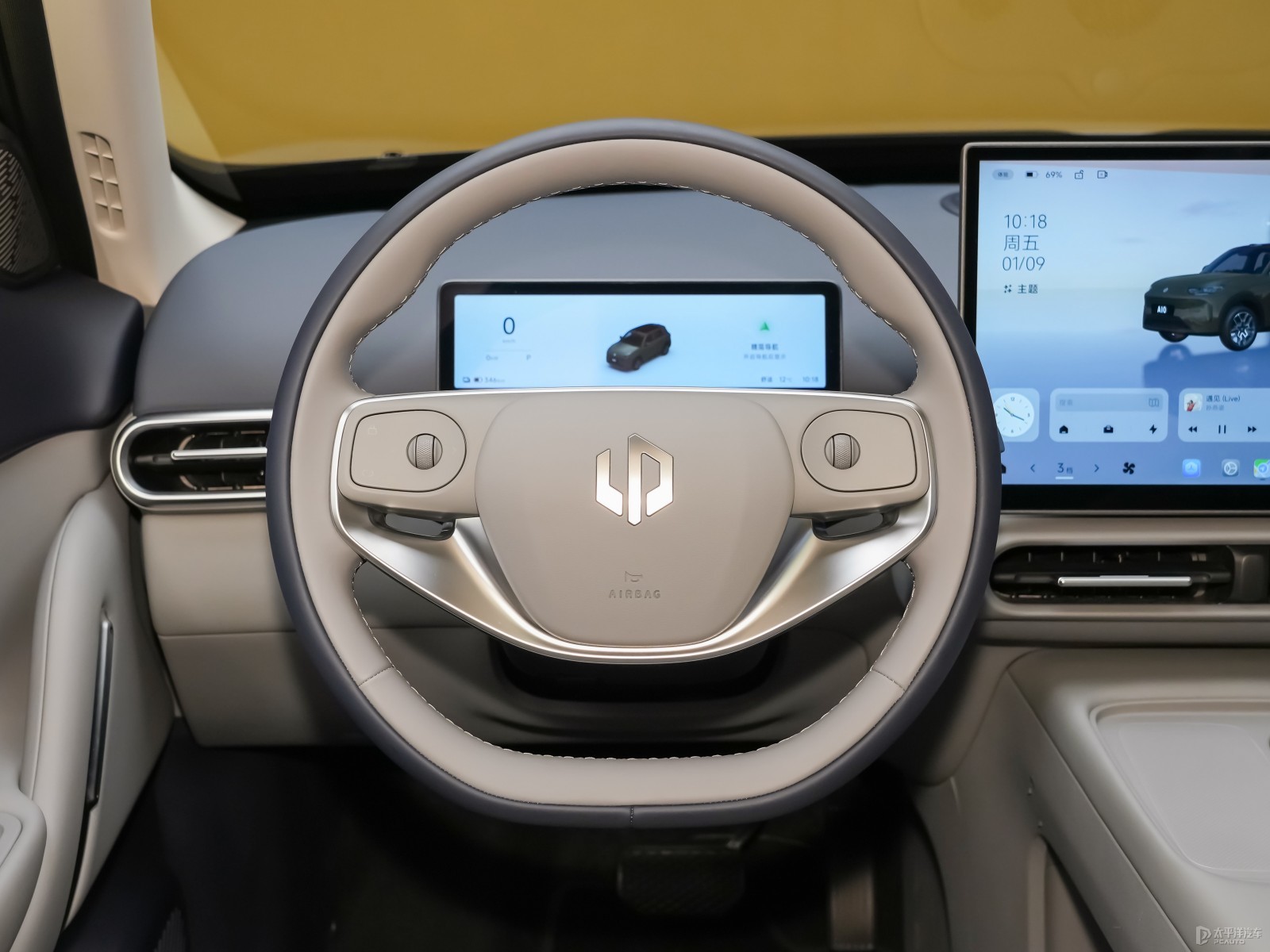 内饰方面,零跑A10采用了时下流行的简约化设计风格,中控台线条平直,整体营造出年轻时尚的视觉感受。