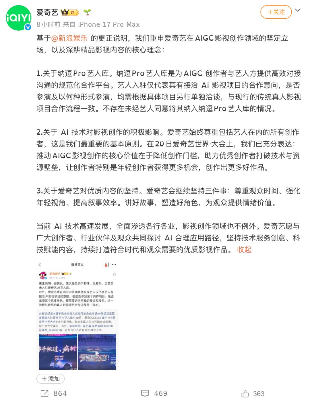 引发这场全网群嘲的,是爱奇艺高调宣讲的一项关于AI数字分身创作的宏大计划。然而,这场原本旨在展示科技赋能娱乐的大型活动,却在短短几个小时内,演变成了一场被多位头部艺人集体“打脸”的公关灾难。