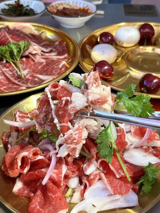 正宗潮汕火锅 清汤打底。各种牛吊龙等等都是现场切 太太新鲜啦。下锅刚变色就可以吃啦 鲜嫩,可以加点沙茶酱,还有手打虾滑 牛肉丸 真的巨弹牙!