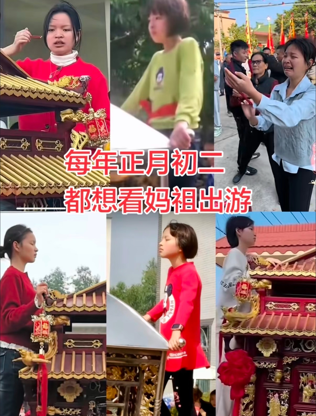 正月初二村里办妈祖巡游,本来一直是17岁的徐某蓝参与仪式。结果当天一个10岁小女孩许某涵,因为留着短发被当成男孩,自己爬上了巡游的轿子,被大家当成了“新童”。