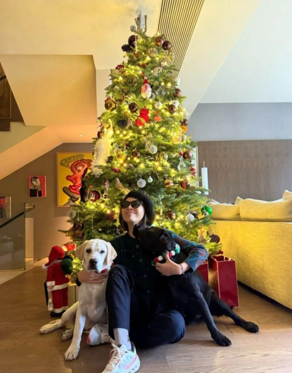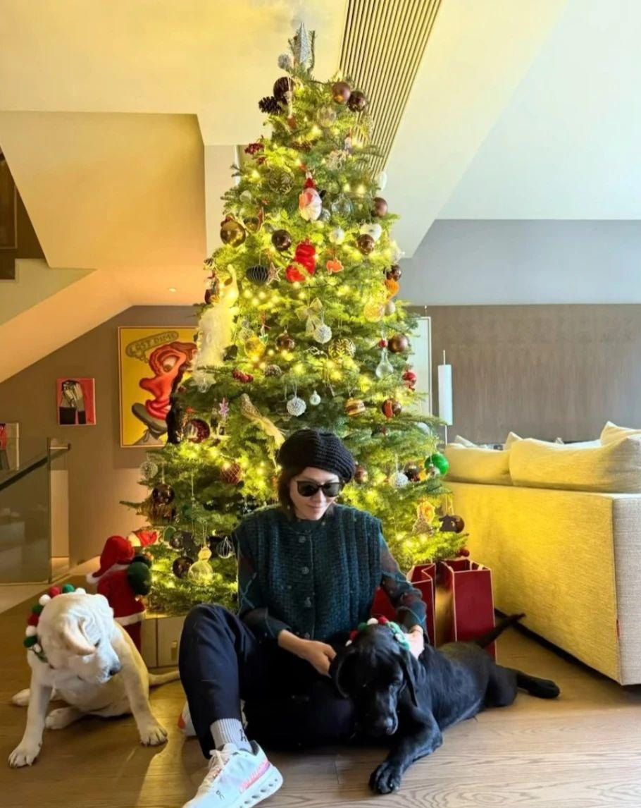 今年的圣诞装饰也是热热闹闹,圣诞树下还多了两只可爱的狗狗,两只拉布拉多犬,是刘嘉玲和梁朝伟去年时候开始养的。