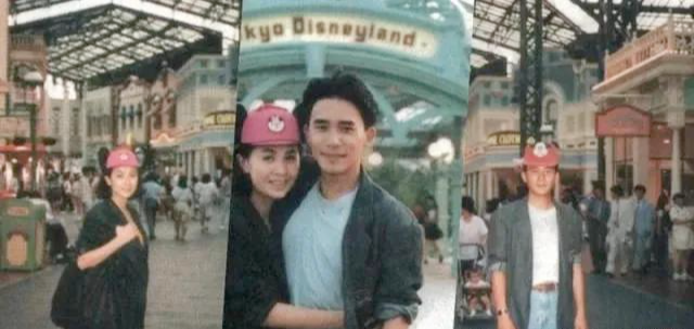 两个年轻人戴着米奇帽子,在迪斯尼游玩合影,就这样牵手走过了35年。