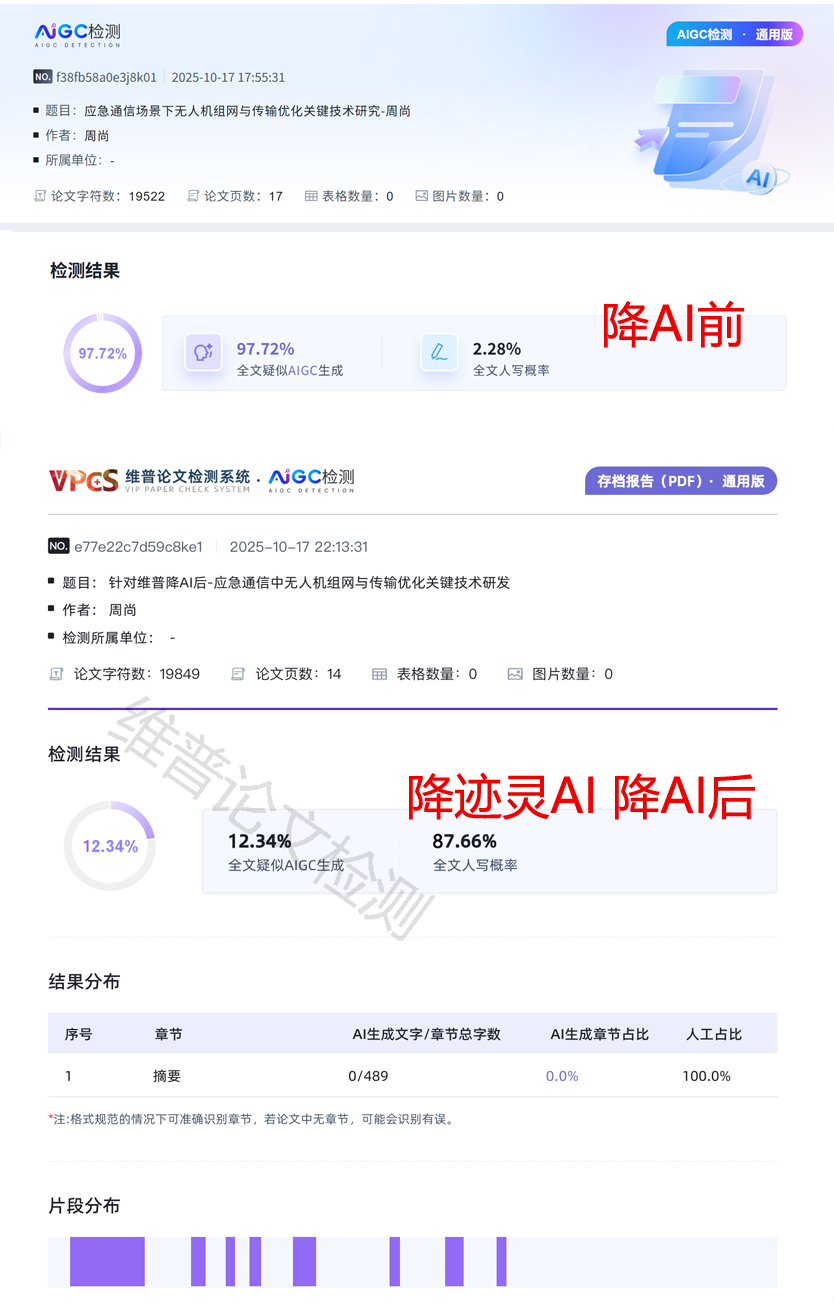 先给大家说最关心的效果问题,毕竟我们改论文最核心的就是能过学校检测。降迹灵AI最牛的就是支持双降,既能降AI率又能降重,而且承诺降完后查重15%以内、AIGC率20%以内,超了还能退款!我当时把一万多字的论文传上去,选了对应学校要求的维普检测适配模式,不到5分钟就改完了。下载下来先自己查了遍,AIGC率直接从97%降到12%,查重率8%,完全符合学校要求,关键是核心观点一点没改,学术表述还很专业,没有像其他工具那样改出一堆口水话!