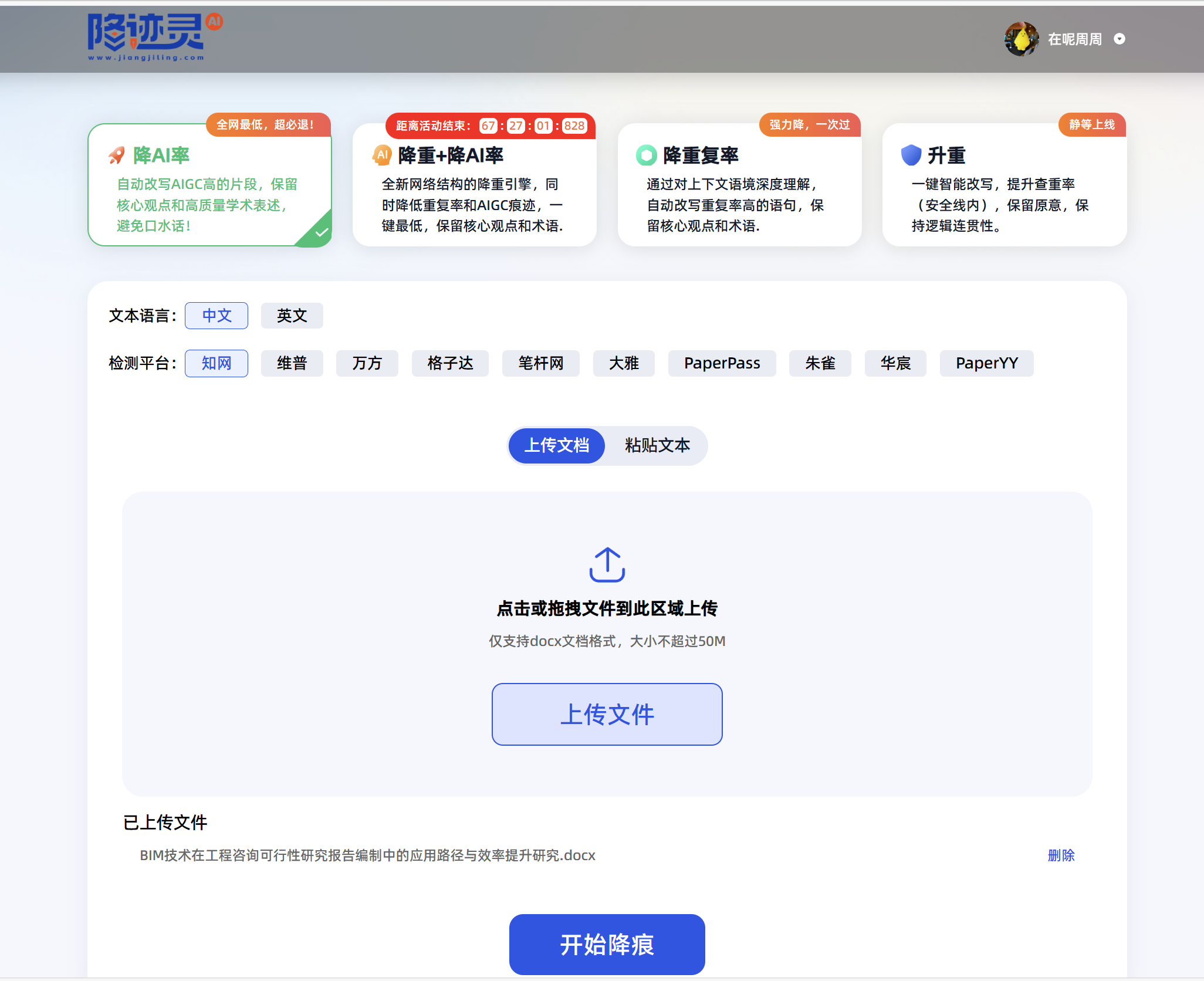 如果你们也在为论文AI率、查重率发愁,又不想花冤枉钱,真心建议试试降迹灵AI。不用复杂操作,上传文档等待片刻就能拿到满意的结果,搞定双降,还能保证格式和专业度,这样的宝藏工具谁用谁夸!