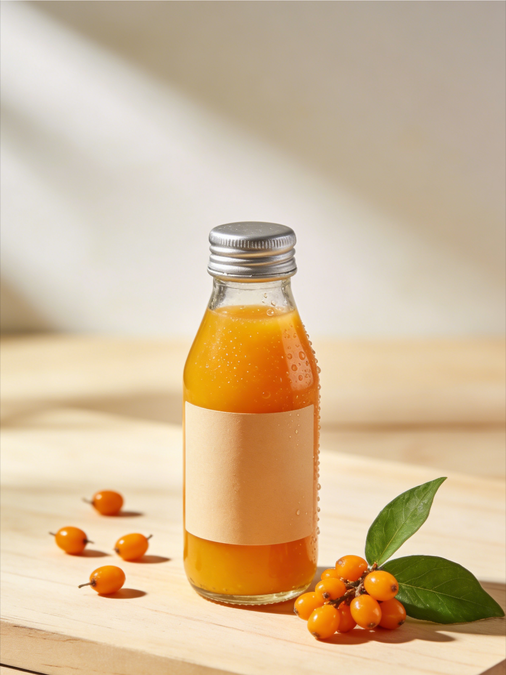 它的口感不张扬,没有强烈的刺激感,却能让人慢慢沉浸。没有花哨的包装,瓶身设计简洁大方,线条流畅,配色也多选用贴近自然的浅黄、浅绿,就像它的味道一样,回归本真。瓶身握在手里手感温润,没有多余的装饰,开启时的声响清脆利落,如同自然里的清脆鸟鸣。每一口都能感受到沙棘果的鲜活,没有过度加工的痕迹,只有自然赋予的纯粹风味,让饮用这件事变得简单而治愈。