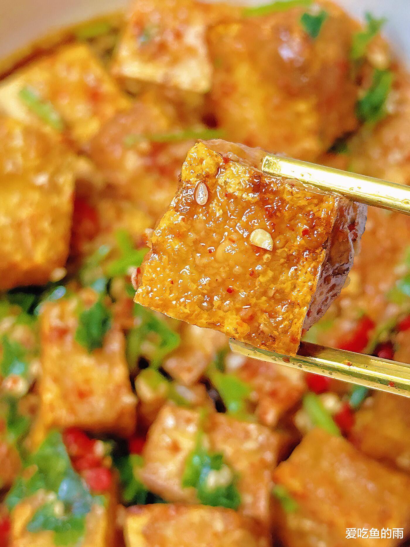 这时候满屋子都是烧烤摊的孜然香!出锅时滋滋冒油泡,其实那都是豆腐自己逼出来的水分和酱汁在欢腾。夹一块吹吹凉,外皮焦脆得像锅巴,咬开里面却嫩得像布丁,滚烫的汁水在嘴里爆开,咸鲜微甜带点辣,这哪是吃草啊,简直是在吃肉!